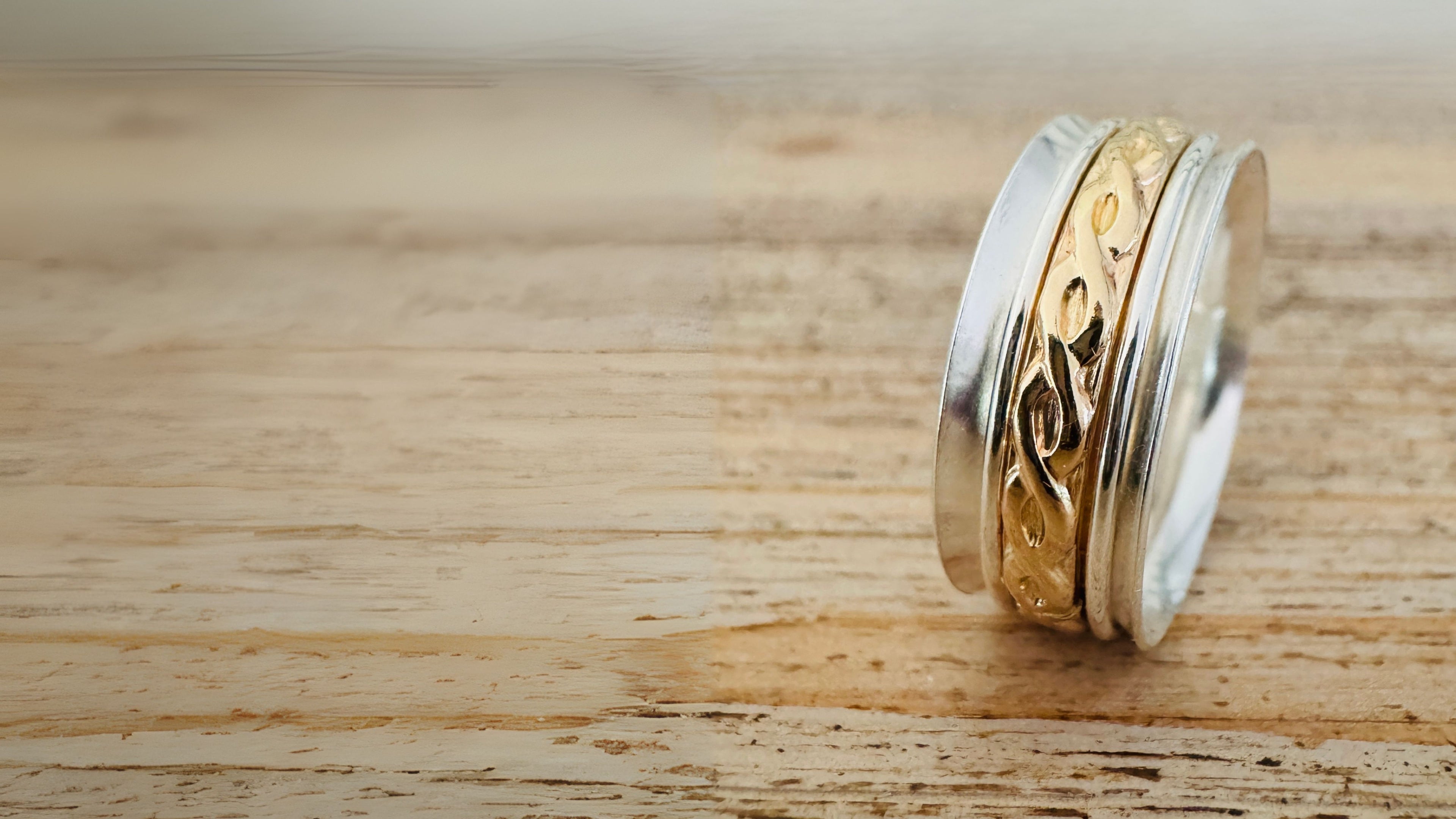 Sterling Silver & Gold Fidget Spinner Ring – Size 9.5