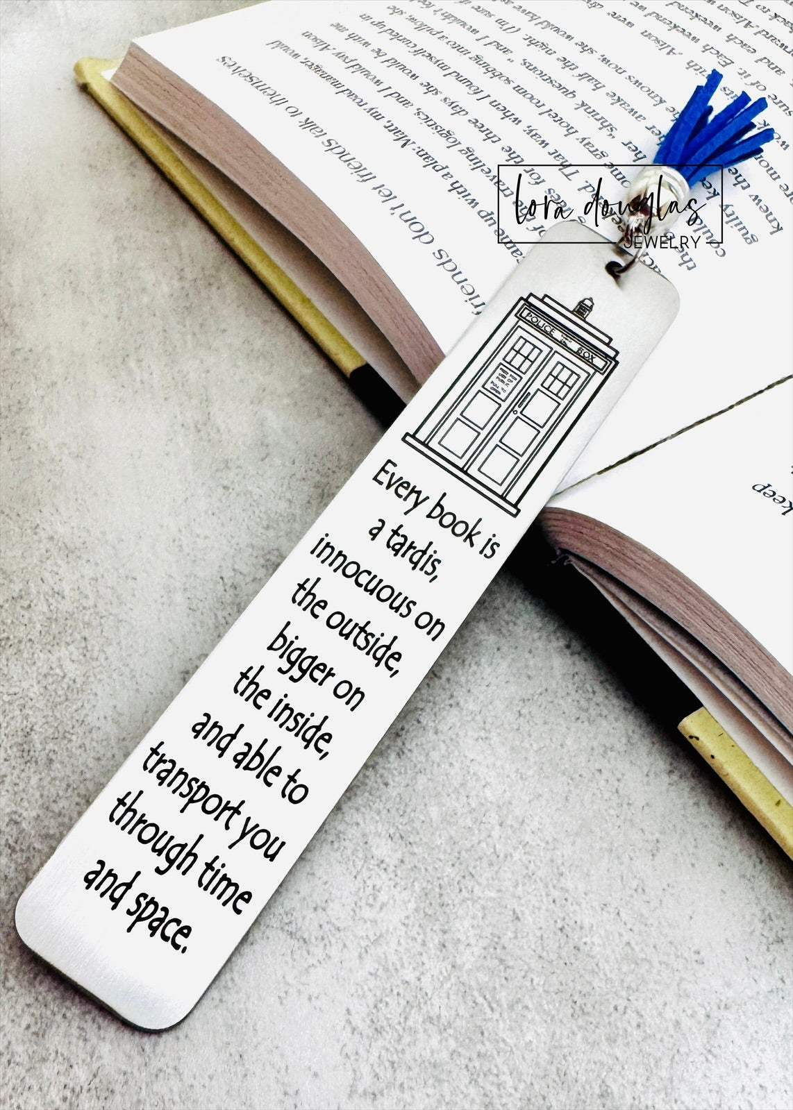 Every Book is a Tardis, Dr. Who Bookmark. Engraved Tassel Bookmark